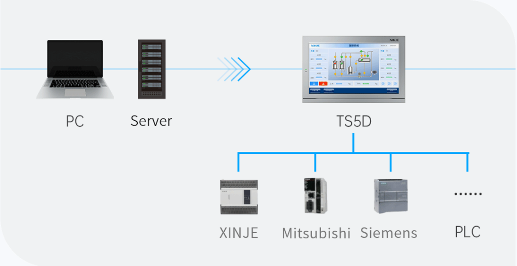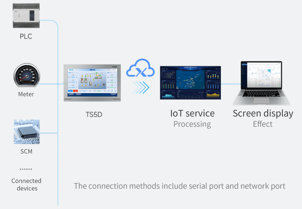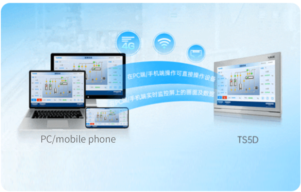 Support VNC, can monitor HMl real-time images and real-time control through PC/mobile phone, achieving “on-site situation, one hand control”.