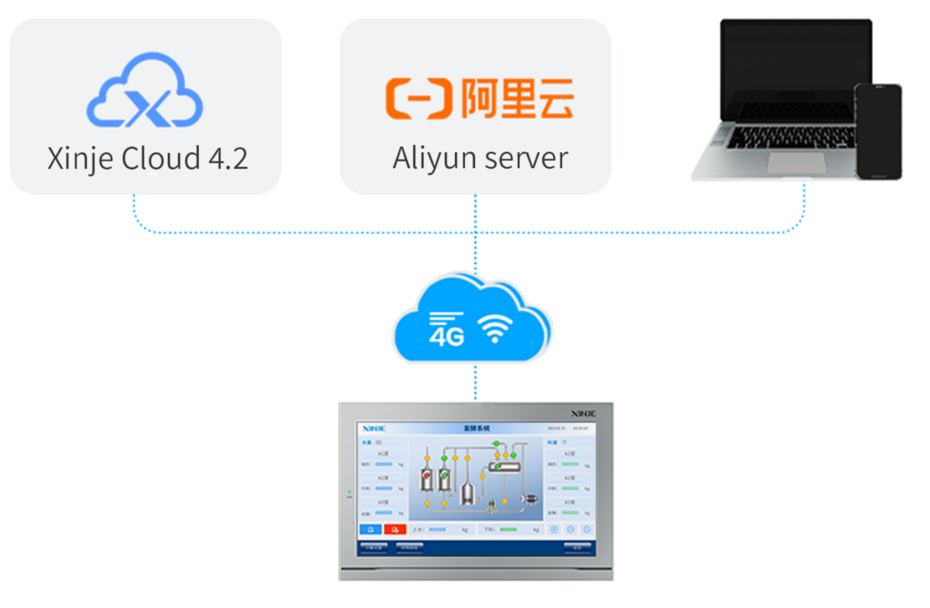 Can be connected to XINJE Cloud to achieve centralized device monitoring, data storage, alarm push and other functions.