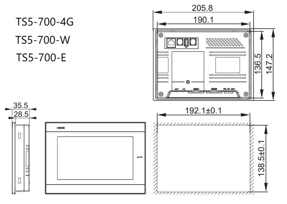 Ethernet port | Support communication with TBOX, Siemens S7-1200, Siemens S7-200 Smart and other Modbus TC |